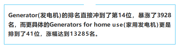 ►备用电源:除了大型发电机,Power bank(移动电源)和Portable charger(便携充电器))的排名也涨了几百名,分别排13和31位;