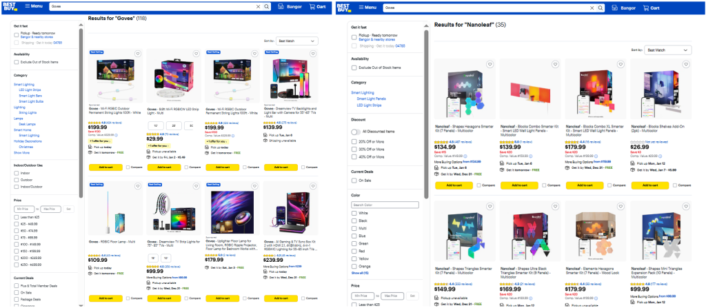 在BestBuy具有审核机制的Marketplace上,品牌能够更有效地控制纯净度。例如,安克投资的智岩科技旗下品牌Govee和加拿大品牌Nanoleaf。二者在BestBuy上的销售页面清晰规范,不仅享有官方的富媒体内容支持,且在定价和促销上能够与品牌整体战略保持一致。这种环境不仅保护了价格体系,还保护了品牌作为“高端技术产品”的形象定位。