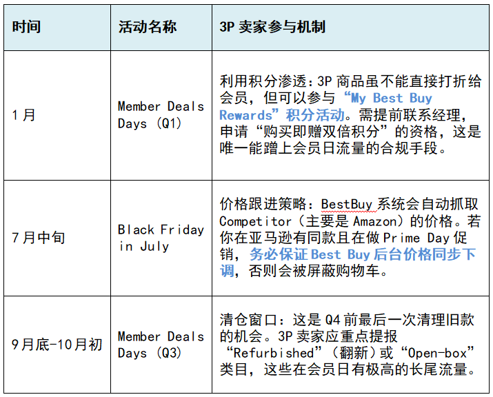 BestBuy的核心是My Best Buy会员体系,但3P卖家被禁止直接设置会员专享价。那么3P卖家应该怎么做才能在活动脱颖而出呢?参考下图: