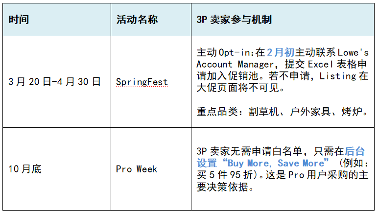 Lowe’s的线上流量极其庞大,但明确规定3P卖家默认不参加全站大促。但是!并不是没有机会在大促出现,参考下图: