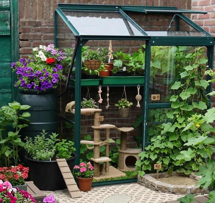 宠物友好的户外设施、防滑防烫的宠物专用路径材料、与景观融合的宠物娱乐区域布置。
