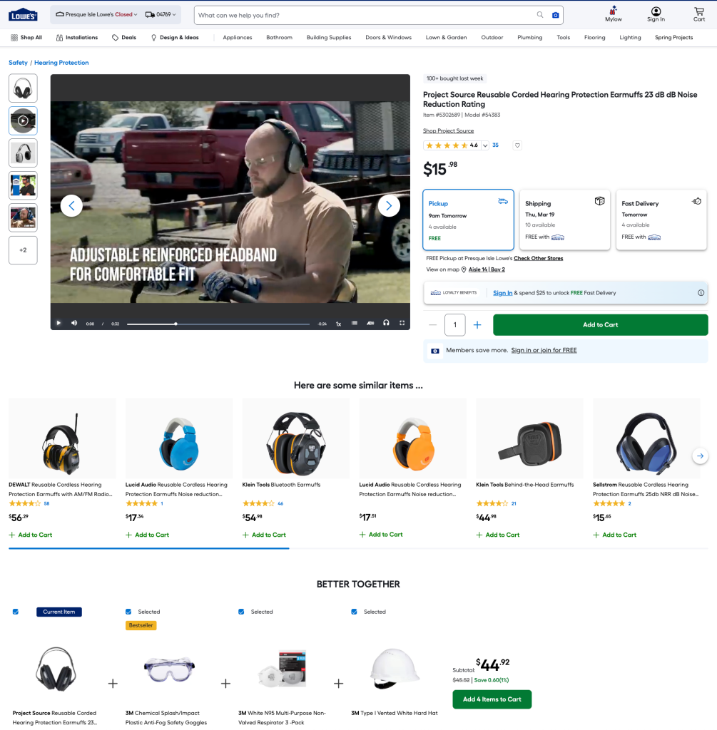 ①降噪耳机或耳塞:亚马逊“主打长途飞行的降噪耳机”,在Lowe’s也能被定义为“听力保护”。消费者在购物期间购买了割草机、吹叶机等重型工具,需要降噪耳机或耳塞来防止噪音伤害。