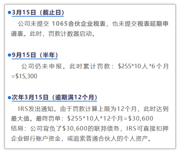 案例背景:一家由10位投资人组成的房地产众筹合伙企业。2025年项目处于开发期,账面亏损$200,000,无任何利润分配。公司管理人认为“没赚钱不用急着报税”,错过了2026年3月15日的截止日期,且未申请延期。