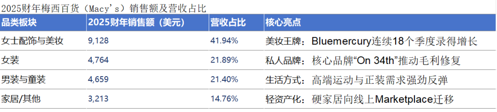 梅西通过奢侈品抵御高端市场的侵蚀,同时通过重塑私人品牌(On 34th)防守来自 Target 等折扣零售商的份额抢夺。
