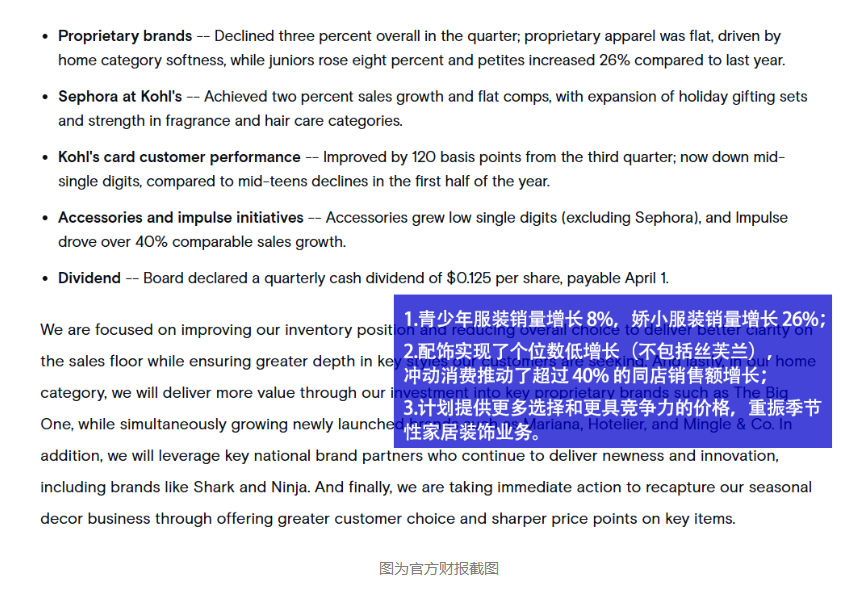 财报中明确提到部分子类目的爆发,其中包括Impulse(冲动消费)Juniors(青少年服饰)、Petites(小个子女装)和Seasonal Decor(季节性装饰品)。