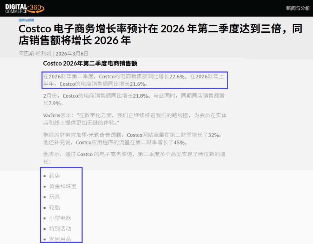 Costco Q2 的数字业务表现异常亮眼,销售额同比增长22.6%,增速是整体销售额的三倍 。通过拆解财报,跨境灯预测出以下三个选品风口: