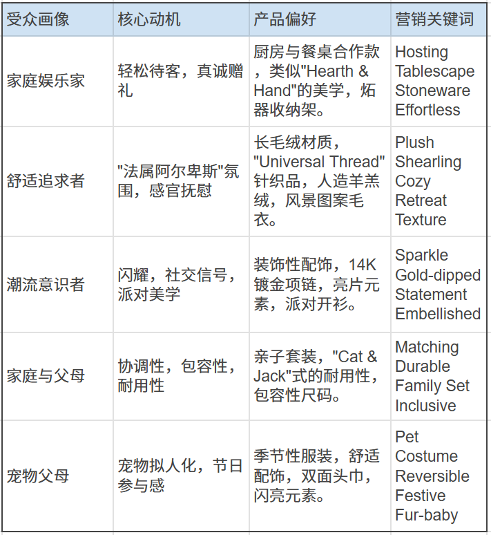 通过Target设计团队分析的核心受众画像,总结为以下表格: