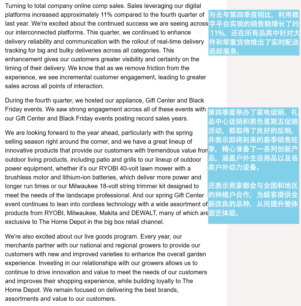 图为家得宝2026年Q4财报电话会议记录