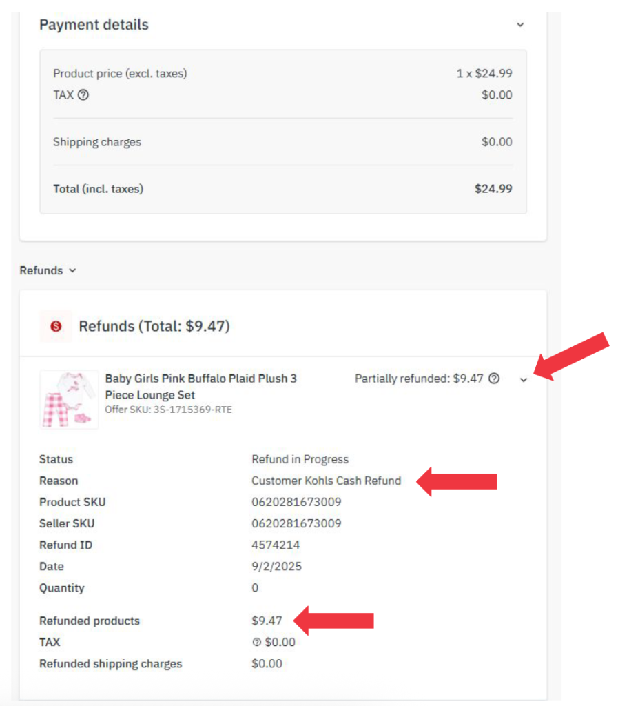 ▪ “Refunded products”显示Kohl’s Cash使用金额