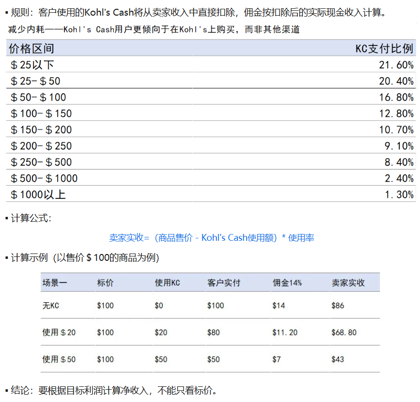 发放成本完全由 Kohl’s 承担,使用部分不计算卖家佣金