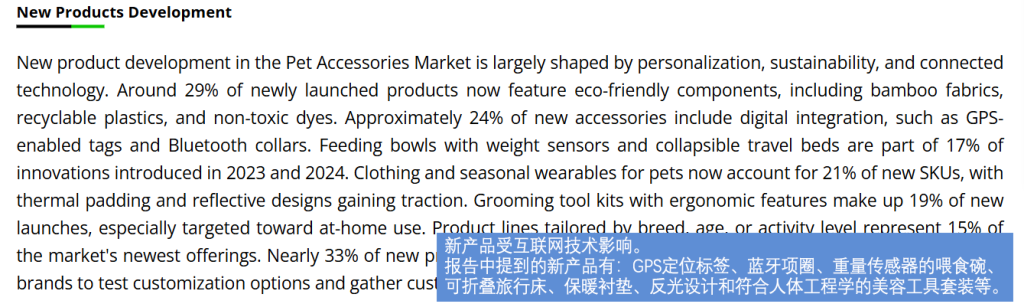 据Pet accessories市场报告分析,当前宠物配件市场正由传统玩具和服饰,转向智能化、专业化及高端生活方式类产品。数据显示,智能宠物配件在新品发布中约占 17%,且超过33%的新增SKU来自智能产品扩展;同时,专业美容与护理配件约占全球市场的18%,需求持续提升。随着消费升级,超过40%的宠物主人更偏好兼具功能性与设计感的高端或“家具化”宠物用品,推动市场向高附加值细分方向发展。