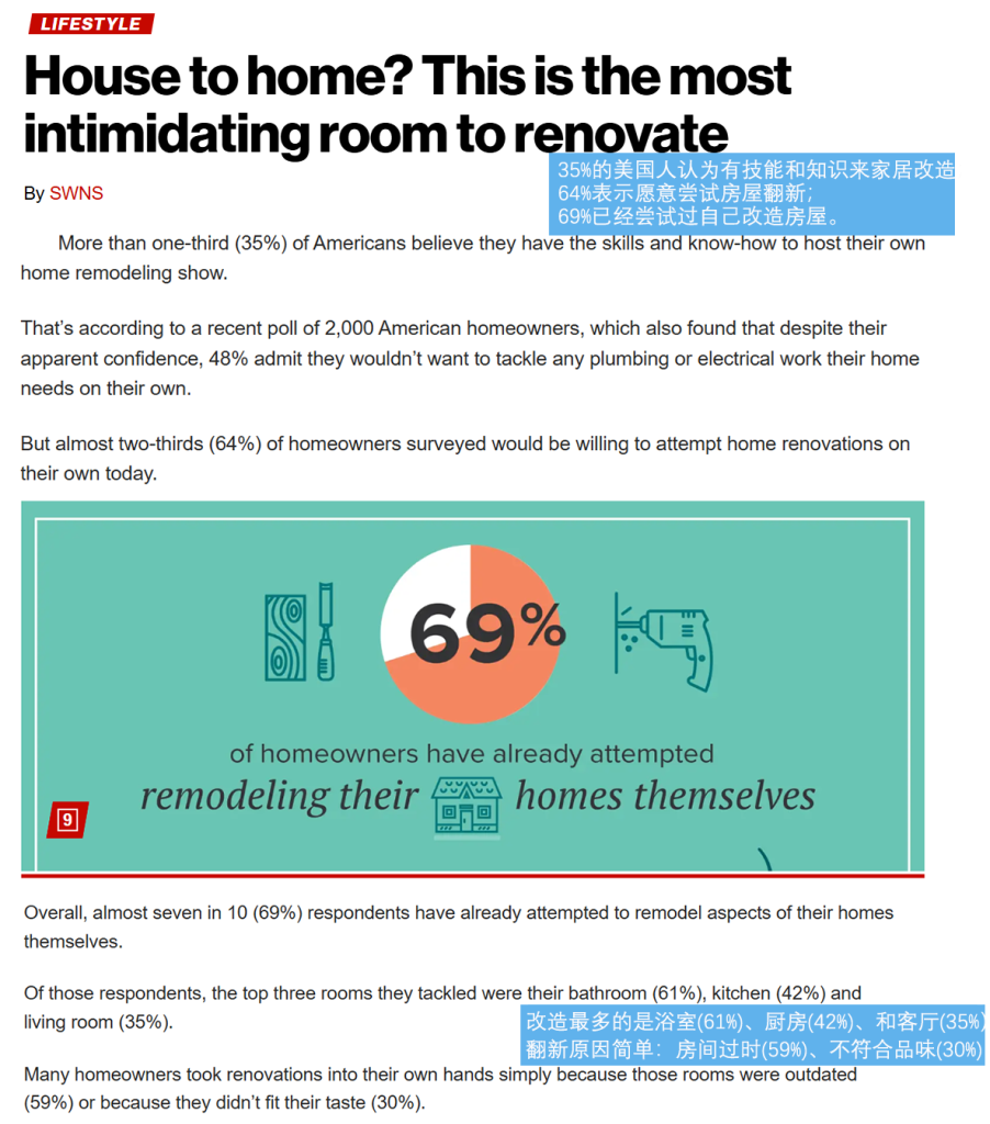 研究显示,在家居改善活动中,64%的美国家庭愿意尝试自己动手完成装修任务,近69%的房主已经亲自进行过改造。这说明房主在功能升级和局部改造上的参与度很高。即便有些业主在施工环节聘请专业人员,他们在产品和品牌选择上仍然保留极大的自主权。