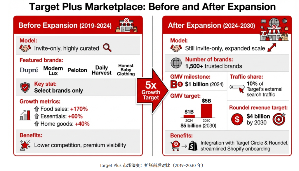 这背后隐含着一个对卖家至关重要的商业逻辑:为了实现5倍的增长,Target必须打破以往极度封闭的姿态,吸纳更多的优质品牌。对于第三方卖家而言,这不仅是一个销售渠道,更是未来五年美国电商市场中极其稀缺的盈利洼地。