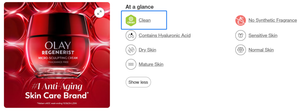 Target承诺2025年引入2000+健康类新品,为了扶持这些产品,算法对带有Target Clean徽章(无毒、无害成分)的产品基于巨大的流量倾斜。